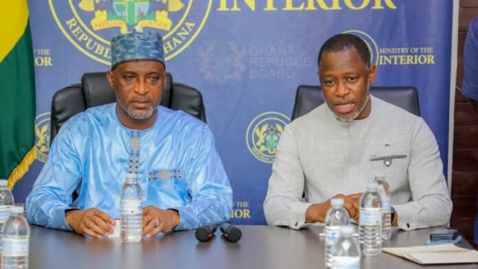 Le Ministre ghanéen de l’Intérieur, Monsieur Muntaka Mohammed-Mubarak, entouré de l’Ambassadeur du Ghana au Burkina Faso, S.E.M. Kenneth Akibate, et de ses collaborateurs, a réaffirmé l’engagement de ses équipes techniques à mettre en œuvre des solutions efficaces pour répondre aux préoccupations soulevées.