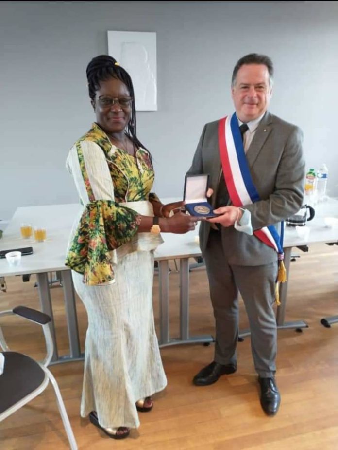 A l’occasion, elle a été distinguée de la médaille de la ville, remise pour la première fois à un citoyen d’Afrique, par les autorités communales.