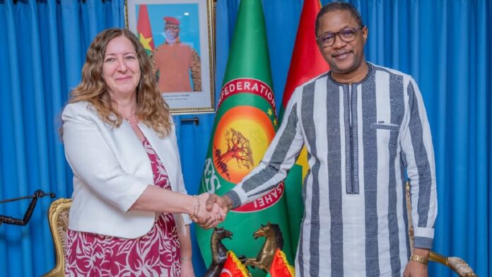 (Ouagadougou, le 18 mars 2026) Le ministre des Affaires étrangères SEM Karamoko Jean Marie Traoré, accompagné du ministre délégué Madame Bêbgnasgnan Stelle Eldine Kabré/Kaboré, a reçu en audience le mardi 17 mars 2026, l’Ambassadeur de la République de Türkiye, SE Madame Feriba Hokkaci Esirgen.