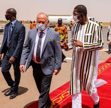 Il a été accueilli à sa descente d’avion sur le tarmac de l’aéroport international de Ouagadougou par son homologue du Burkina Faso, Alassane Bala Sakandé.