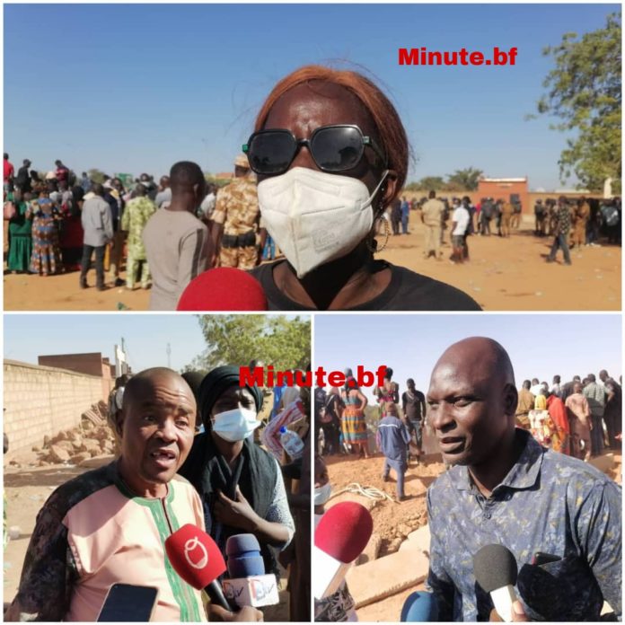 Fatim Zongo, parente de victime : « Ce qu’on demande (à la hiérarchie militaire et aux autorités) c’est qu’au lieu de laisser les enfants des gens mourir pour après les confectionner des cercueils à coup de millions, il faut leur donner à manger; prenez vos responsabilités, faites ce que vous devez faire pour qu’ils ne tombent pas de cette manière au combat. Si vous voyez qu’il n’y a pas de solutions, trouvez au moins une porte d’issue. Ce n’est pas forcé qu’il y ait tous ces morts ou tous ces dégâts avant que vous ayez pitié. C’est quelle manière de compatir ça ? Regardez les tombes qu’ils ont creusées. Tout le monde ne fait que se plaindre. Les tombes sont très petites. On ne sait même pas si ça vaut un mettre de largeur ou de longueur. Elles sont très petites. D’abord, vous avez laissé les gens tomber de faim. Ce n’est pas facile. Vraiment, on a mal au cœur. Ayez un peu de la sympathie, ce sont des humains, ce ne sont pas des animaux. Notre cri de cœur pour tous les parents, pour tous ceux qui sont tombés au cours de ce combat est le suivant: de grâce, ayez pitié des enfants des gens. Ne prenez pas nos enfants pour aller déposer comme si c’était un troupeau. Ça fait très mal, nous avons mal au cœur. Ce qu’on a à vous dire (hiérarchie militaire et gouvernement), sachez que ce sont nos frères qui sont morts. Nos parents ont pris soin d’eux, ils les ont mis à l’école, ils les ont éduqués, les ont nourris jusqu’à ce qu’ils deviennent des hommes. Et vous avez eu besoin de ces Hommes. Ils étaient là pour leur pays. Donc vous ne devez quand même pas les laisser tomber au combat comme s’ils étaient des animaux. Vous êtes des médecins après la mort. »