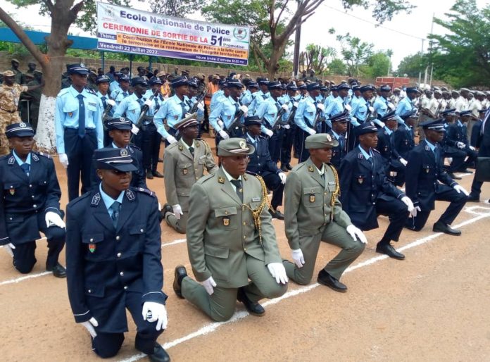 La 51e promotion de l’Ecole Nationale de Police dénommée « Renouveau sécuritaire », a effectué sa sortie ce 22 juillet 2022 à Ouagadougou sous le thème : « Contribution de l’Ecole Nationale de Police à la lutte contre le terrorisme et la restauration de l’intégrité territoriale. » La cérémonie de sortie de promotion a été placée sous le patronage du Premier ministre, Albert Ouedraogo et sous le parrainage du Président de la Chambre de commerce et d’industrie du Burkina Faso, Mahamadi Savadogo.