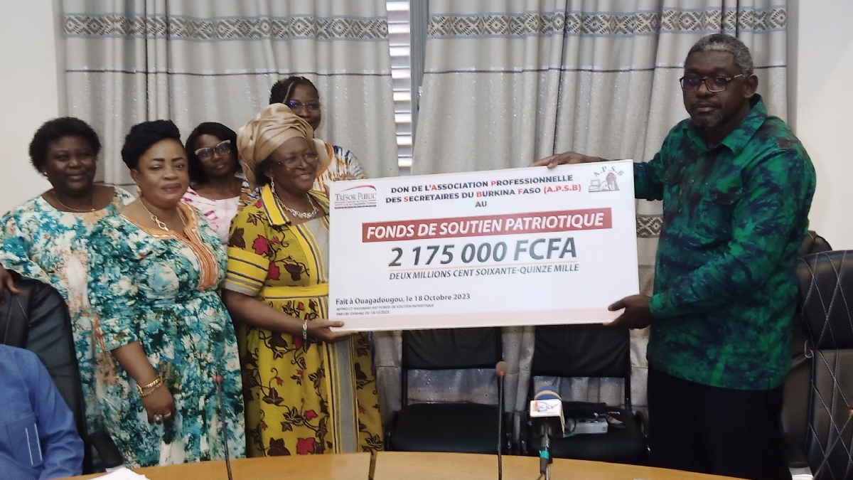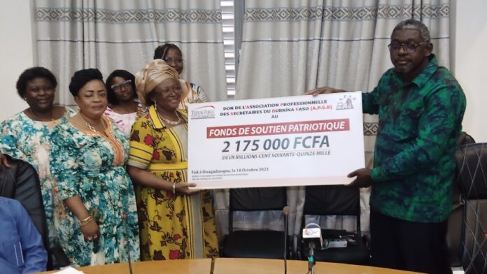 La Société de transport en commun (SOTRACO) et l’Association professionnelle des Secrétaires du Burkina (APSB) sont de ceux-là qui ont joué leur partition. La SOTRACO a offert un chèque de 2 237 505 F CFA, tandis que, de son côté l’APSB a contribué à hauteur de 2 175 000 F CFA au profit du Fonds de soutien patriotique (FSP).