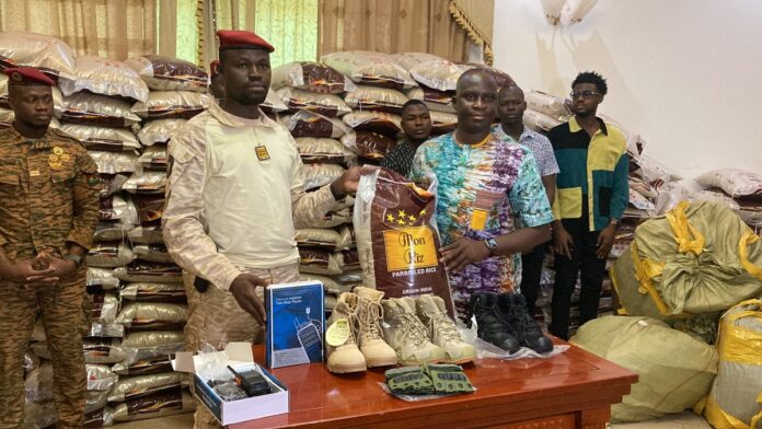 L’élan patriotique dans le cadre de la contribution à l’effort de paix se poursuit. Dans la matinée de ce mercredi 7 mai 2025, le jeune entrepreneur burkinabè, Souleymane Tahita, PDG de l’entreprise Pomme Store, a fait don d’un important lot de vivres et de matériel au profit des Forces de défense et de sécurité (FDS) et des Volontaires pour la défense de la Patrie (VDP). Le don a été réceptionné par le Capitaine Inoussa Tarnagda, représentant le Commandant de la Garde républicaine.