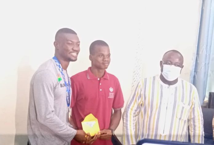 Le médaillé de bonze des derniers jeux olympiques et Doctorant en génie- électrique Hugues Fabrice Zango continue ses tournées pour la présentation de sa médaille. Ce vendredi 13 Aout 2021 c’est au tour du Ministère de l’Education Nationale, de l’Alphabétisation et de la Promotion des Langues nationale (MENAPLN) de l’accueillir. L’athlète, au cours de la visite, a fait une surprise aux excellents élèves de la précédente année scolaire venus rencontrer leur ainé. Le premier médaillé olympique du pays a été reçu par le Secrétaire General du ministère Pr Kalifa Traoré.