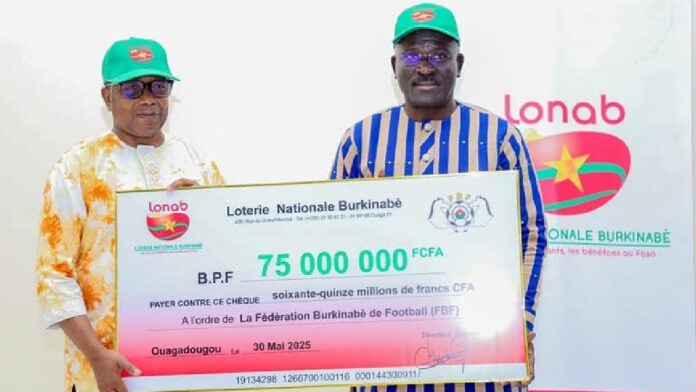 Pour la promotion et le développement du football burkinabè, la Fédération burkinabè de Football (FBF) peut compter sur la Loterie nationale burkinabè (LONAB). Ce vendredi 30 mai 2025, la nationale des jeux du hasard a renouvelé son partenariat avec la FBF, en lui remettant un chèque d’une valeur de 75 millions de F CFA.