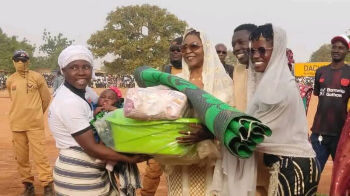 Pour joindre l’utile à l’agréable, Amsétou Nikièma a offert gratuitement 10 tonnes de riz, 600 baignoires, des nattes, des couches, entre autres, aux femmes. Ce geste, a-t-elle souligné, vise à exprimer sa « reconnaissance envers Dieu et [ses] ancêtres, et dire aux populations de [son] village [qu’elle] les aime ».