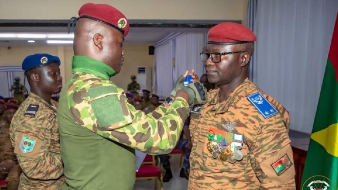 « Général de Brigade Kassoum COULIBALY, je vous remets les insignes de votre grade ». C’est par cette formule consacrée que le Chef suprême des Forces armées nationales, le Capitaine Ibrahim TRAORE a procédé au port des épaulettes et à la remise du béret de Général de Brigade au Ministre d’État, Ministre de la Défense et des Anciens combattants.