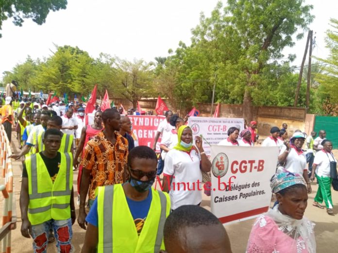 Les travailleurs ont entamé leur marche-meeting devant la bourse du travail de Ouagadougou ce 1er mai 2021. Cantonnant des cris de cœur à caractère dénonciatif, les travailleurs, en rang bien ordonné, ont marqué le pas d’abord en direction du ministère de la fonction publique où il ont livré leur plateforme revendicative à leur ministre de tutelle.