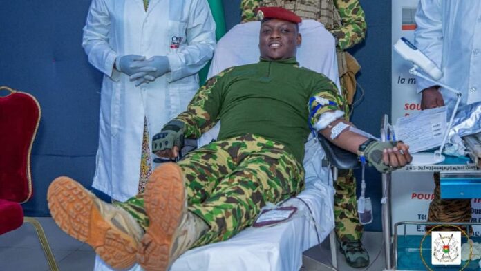 (Ouagadougou, 14 juin 2024). Le Président du Faso, le Capitaine Ibrahim Traoré a pris part, ce vendredi matin au Palais de Koulouba, à l’opération de collecte de sang initiée dans le cadre de la Journée mondiale du donneur de sang, célébrée chaque 14 juin.