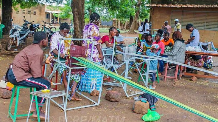 Les femmes déplacées internes du Centre Kango du secteur n°5 de Koudougou ont reçu au cours de l’année 2024 dix (10) kits de production de pagnes Kokodonda, dix (10) métiers à tisser et dix (10) kits de fabrication de savon. L’acquisition de ce matériel a été possible grâce à un financement du Programme pour la Résilience, la Gouvernance locale et les Services de Base (PREGOLS) à travers l’Agence nationale d’appui au Développement des Collectivités territoriales (ADCT).