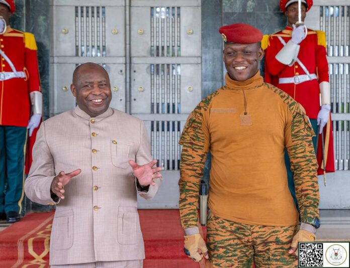 (Ouagadougou, 20 avril 2026). Le Président du Faso, Chef de l’État, Président de la Confédération des États du Sahel (AES), Son Excellence le Capitaine Ibrahim TRAORÉ, a eu des échanges, ce lundi en fin de matinée, avec le Président en exercice de l’Union Africaine (UA), le Président burundais, le Général Évariste NDAYISHIMIYE.
