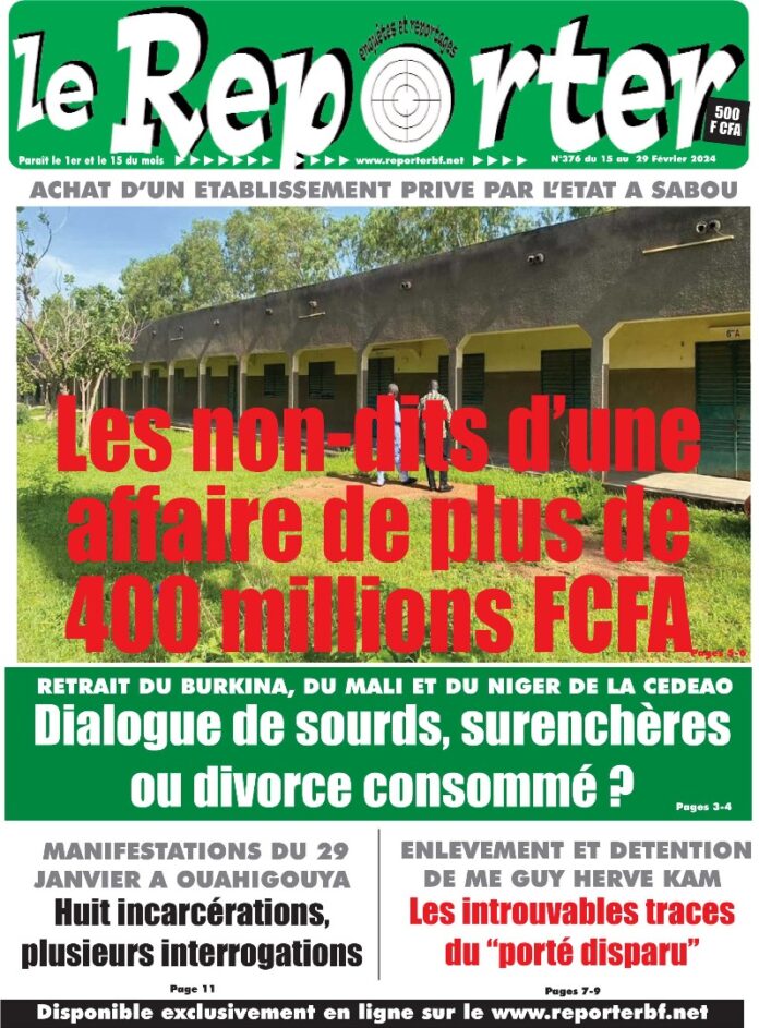 🛑 NB : Cette parution est uniquement disponible sur le site www.reporterbf.net