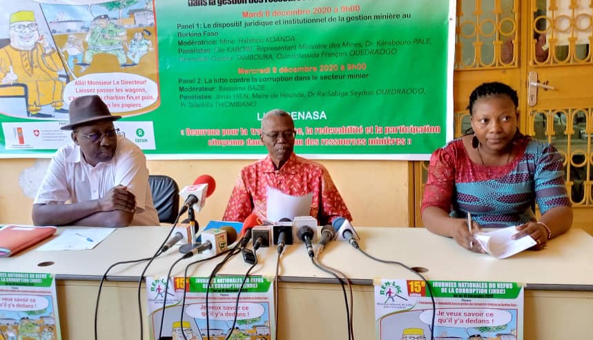 Prévues se tenir du 1er au 10 décembre 2020, les journées nationales du refus de la corruption sont placées sous le thème :« Transparence et redevabilité dans la gestion des ressources minières au Burkina Faso».
