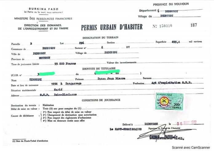 Madame 𝐑𝐞𝐢𝐧𝐞 𝐓𝐔𝐈𝐍𝐀 résident à Ouagadougou, déclare la perte de son Permis urbain d’habitation (PUH), portant le nom : 𝐓𝐈𝐍𝐆𝐔𝐄𝐑𝐈 𝐃𝐚𝐧𝐬𝐚 𝐉𝐞𝐚𝐧-𝐏𝐢𝐞𝐫𝐫𝐞 avec le numéro : 150310. Le permis a été égaré à Ouagadougou.