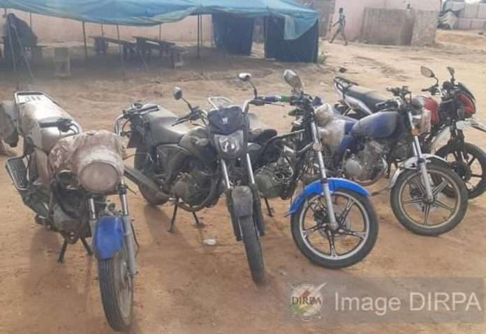 Au titre du matériel récupéré, le même communiqué cite 05 motos, 01 Pistolet mitrailleuse (PM) de type AK-47, 02 mines conventionnelles, 01 EEI en préparation, un 01 sac d’engrais de 50kg et bien d’autres matériels.