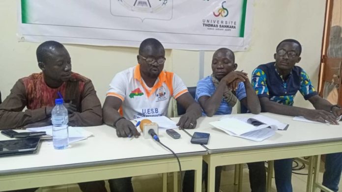 Une coalition des structures à caractère syndical d’étudiants composée du mouvement des étudiants du Faso (MEFA), l’UESB, la coalition nationale des élèves et étudiants du Faso (CONEEF), la fédération estudiantine et scolaire du Burkina Faso ( FES/BF), l’union nationale pour la renaissance estudiantine et scolaire (UNARES), l’association des scolaires et étudiants du Faso (ASEF) appelle « l’ensemble l’ensemble de tous les élèves et étudiants à se démarquer, sans exception aucune de la marche du samedi 27 Novembre 2021 ». L’ annonce a été faite ce jeudi 25 Novembre au cours d’une conférence animée à Ouagadougou.