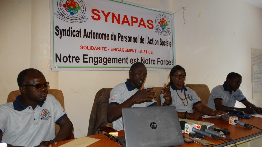 Le SYNAPAS toujours engagé dans la défense des intérêts moraux et matériels des travailleurs, interpelle Madame la Ministre de la femme, de la solidarité nationale, de la famille et de l’action humanitaire sur cette question et affiche sa ferme opposition à cette forfaiture de maintien de Madame OUEDRAOGO/ZIZIEN Fati au poste de Secrétaire Général dudit ministère, après que celle-ci a été admise à la retraite le 18 mars 2021.