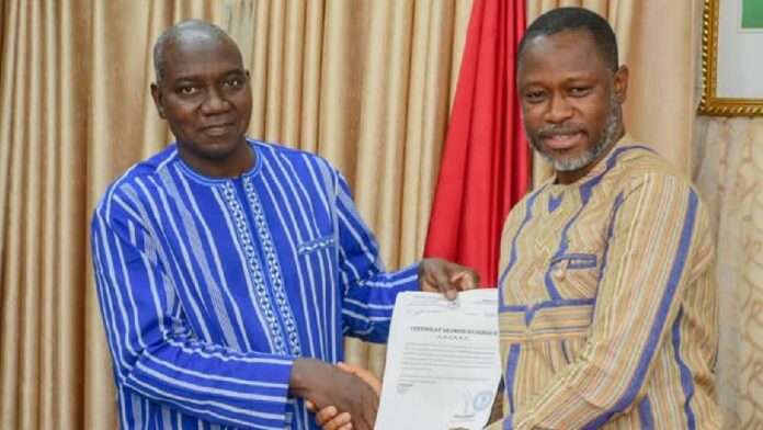 Le Secrétaire Général entrant, Monsieur Saïdou Sankara, a également remercié le Ministre d’Etat pour la confiance accordée. Il s’est engagé à œuvrer avec détermination pour la bonne marche du ministère. « C’est avec humilité et un grand sens du devoir que j’accepte cette haute responsabilité. Je mesure pleinement les défis qui nous attendent et je m’engage à travailler avec rigueur, engagement et esprit de concertation afin de répondre aux attentes de nos concitoyens », a-t-il soutenu.