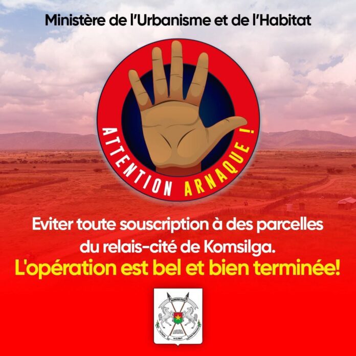 Le Ministère de l’Urbanisme et de l’Habitat alerte l’opinion publique sur la circulation de fausses publications utilisant d’anciens communiqués falsifiés de l’opération Relais-Cité de Komsilga à des fins d’arnaque.