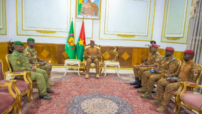 (Ouagadougou, 15 avril 2025). Le Président du Faso, Chef de l’État, le Capitaine Ibrahim Traoré a reçu en audience ce mardi, le comité des Chefs d’État-major généraux des armées de la Confédération des États du Sahel (AES).