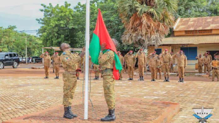 Ce jeudi 03 juillet 2025, s’est tenue au Groupement Central des Armées (GCA), la cérémonie mensuelle de montée de couleurs de la Place d’Armes de Ouagadougou, sous la présidence du Ministre d’État, Ministre de la Défense et des Anciens Combattants, le Général de Brigade Célestin Simporé.