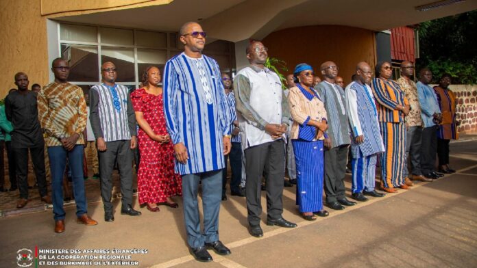 ‎Le ministre des Affaires étrangères, de la Coopération régionale et des Burkinabè de l’Extérieur, SEM Karamoko Jean Marie Traoré, a présidé la cérémonie mensuelle de montée des couleurs nationales, ce lundi 6 octobre 2025, aux côtés du personnel du département en charge de la diplomatie burkinabè.