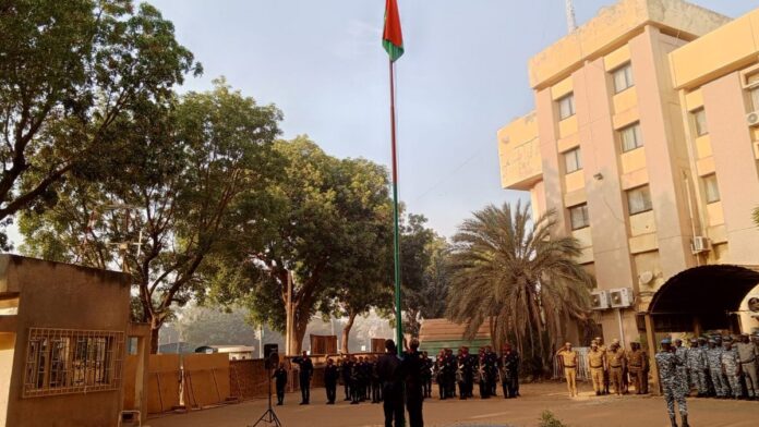 Les agents du Ministère de l’Administration territoriale et de la mobilité (MATM) et ceux du Ministère de la Justice et des droits humains, chargé des relations avec les institutions, Garde des sceaux (MJDHRI), se sont mobilisés ce lundi 5 janvier 2026 pour observer la première cérémonie de montée collective du drapeau national au titre de l’année 2026. La cérémonie, empreinte de solennité et de patriotisme, a été présidée par le ministre chargé de la Justice, Me Edasso Rodrigue Bayala. Le ministre a rappelé aux agents les priorités déclinées par le président Ibrahim Traoré, les engageant à rendre plus accessible les service de la Justice et de l’Administration territoriale aux populations.