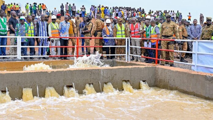 Le Premier ministre, Rimtalba Jean Emmanuel Ouédraogo, a procédé, ce jeudi 3 juillet 2025, à la mise en eau officielle du périmètre irrigué de Dourou, dans la commune de Kirsi, province du Passoré. Cette infrastructure vient accroître les superficies aménagées dans le cadre de la stratégie nationale de lutte contre l’insécurité alimentaire et de promotion de la souveraineté agricole du Burkina Faso.