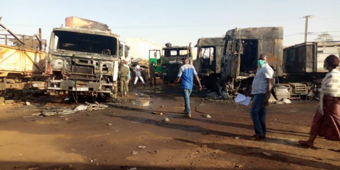 Selon un témoin qui s’est confié à minute.bf, l’incendie serait causé par une action humaine, à savoir « une action de soudure sur le réservoir d’un véhicule », nous a informé un garagiste. Selon son témoignage, le soudeur aurait péri dans les flammes. « Le soudeur a la trentaine, cela fait environ 9 ans qu’il travaille ici », précise notre témoin, visiblement abattu.