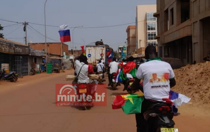 Après leur meeting à la Place de la nation, ce jeudi 13 octobre 2022, pour exiger le maintien du capitaine Ibrahim Traoré à la tête de la Transition, les manifestants arpentent actuellement les artères de la ville de Ouagadougou avec pour but, sensibiliser la masse à adhérer à leur cause (la fermeture des lieux de commerce et sortir manifester pour le maintien de Ibrahim Traoré).