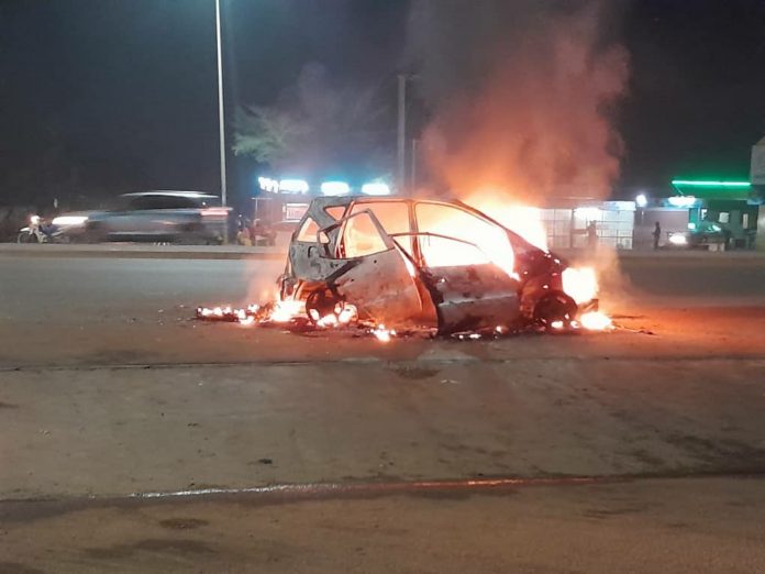 Ouagadougou/échangeur de l’est : Une voiture prend feu en pleine course