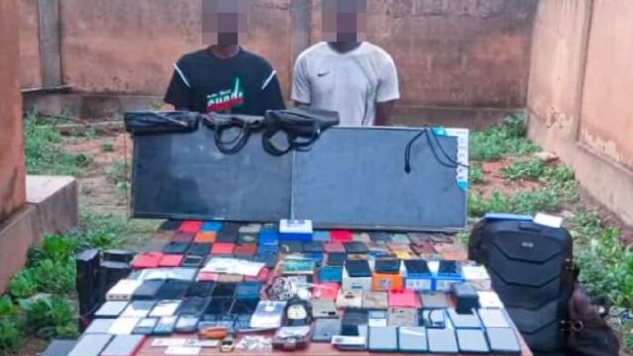 Des téléphones portables de diverses marques et leurs accessoires, plus d’une soixantaine de cartes SIM tous réseaux confondus, des postes téléviseurs, des motos et des sacs à main de femme, sont entre autres objets saisis des mains de deux (02) présumés malfrats par le Commissariat de Police de District (CPD) de Saaba.