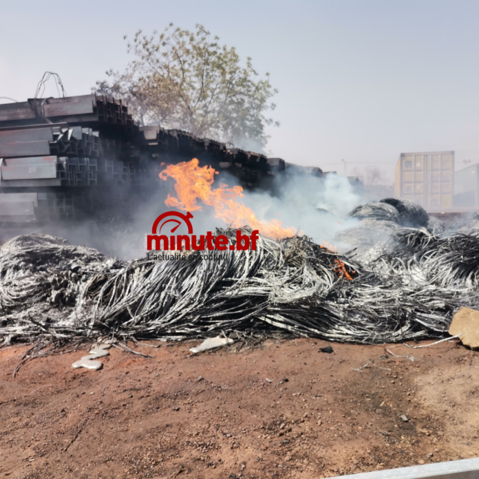 Sur place, on peut voir une importante quantité de câbles, dans les flammes et de l’aluminium rassemblé suite à la fonte des câbles. Aussi, dans les environs, on peut mesurer la propension de l’incendie qui, n’eut été la réaction des soldats du feu aurait pris une autre tournure, avec les conteneurs et autres matériels sur le site.