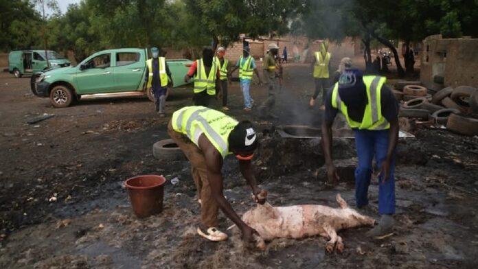 Au cours de la mission, une dizaine de porcs vivants et plus d’une vingtaine de carcasses de porcs ont été saisis et mis à la disposition de la Société de Gestion des Abattoirs de Ouagadougou pour une gestion appropriée.