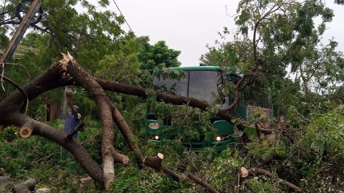 En effet, un bus a été stoppé net dans sa circulation par un arbre qui s’est écroulé sur cette avenue.