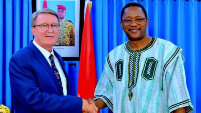 Ouagadougou, le mercredi 24 janvier 2024. Le ministre des Affaires étrangères de la Coopération régionale et des Burkinabè de l’extérieur, a reçu en audience le mardi 23 janvier, le chargé d’affaires de l’ambassade des Etats-Unis d’Amérique au Burkina Faso.