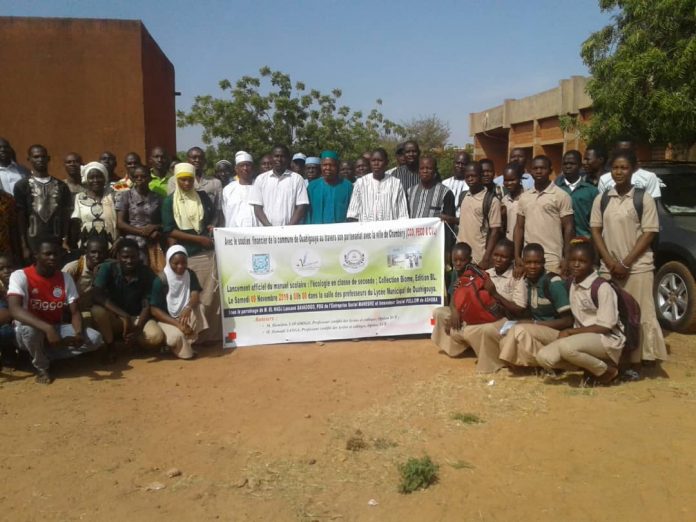 Le samedi 09 novembre 2019, a lieu la présentation du livre intitulé « Ecologie en Classe de secondes » dans les locaux du lycée municipal de Ouahigouya. Cette cérémonie, placée sous le haut parrainage de El Hadj SAVADOGO Lassané P-DG de l’entreprise Social MANEGRE et Innovateur Social FELLOW et ASHOKA, a vu la présence du 1er Vice-Président du conseil régional du Nord, du Directeur de la Maison des jeunes et de la culture de Ouahigouya(MJCO), et de bien d’autres autorités communales. Les chefs d’établissements scolaires, les professeurs et les élèves de la ville étaient également de la partie.