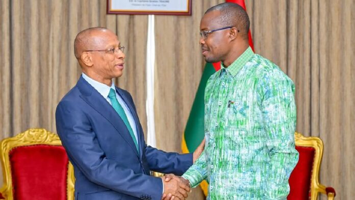 Le Premier ministre, Rimtalba Jean Emmanuel Ouédraogo, a reçu en audience ce lundi 24 février 2025 le Représentant résident du Programme des Nations unies pour le développement (PNUD) au Burkina Faso, Alfredo Teixeira. Cette rencontre a été l’occasion pour le diplomate onusien d’exprimer sa reconnaissance au Chef du gouvernement pour la bonne collaboration dans le cadre de sa mission à la tête de la représentation onusienne.