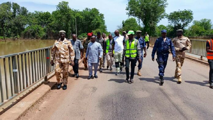 Ce vendredi 18 octobre 2024, le ministre des Infrastructures, Adama Luc Sorgho, s’est rendu au pont de Hèrèdougou, une semaine après les inondations qui ont frappé la région. Cette visite, avait pour objectif de permettre au ministre de s’imprégner des réalités du terrain et d’évaluer l’ampleur des dégâts causés par la submersion du pont.
