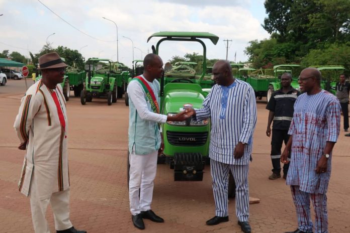 En droite ligne avec la politique de mécanisation agricole au Burkina Faso, le ministère de l’Agriculture et des aménagements hydro-agricoles a organisé le 16 Juillet 2019, la cérémonie officielle de remise de 26 tracteurs agricoles aux chambres régionales d’agriculture du Burkina. Le ministre de l’Agriculture et des Aménagements Hydro-agricoles, Salifou OUEDRAOGO, a présidé la cérémonie de remise officielle des tracteurs agricoles au Bureau National des Chambres Régionales d’Agriculture.