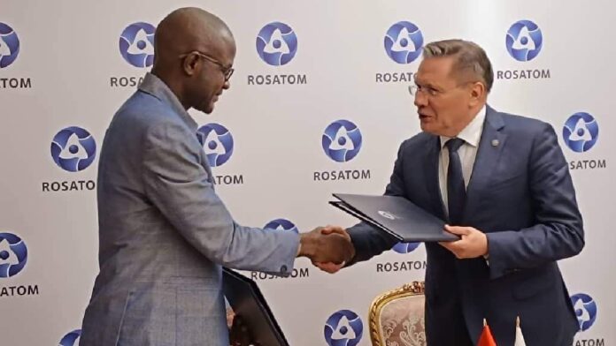 Le Ministre en charge de l’énergie, Yacouba Zabré Gouba et le Directeur Général de ROSATOM, le géant russe de l’énergie atomique, Alexey LIKHACHEV, ont signé le mercredi 5 juin 2024 à Saint-Pétersbourg, trois mémorandums relatifs à la construction de la première centrale nucléaire du Burkina Faso.