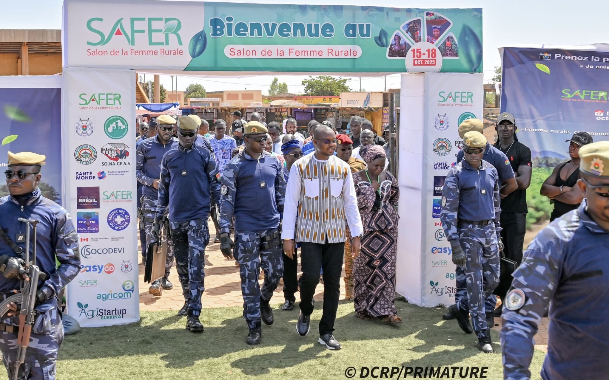 Le Premier ministre, Rimtalba Jean Emmanuel Ouédraogo, a visité, ce samedi 18 octobre 2025, les stands d’exposition du Salon de la femme rurale (SAFER) à la Place de la Nation de Koudougou. Cette visite a été l’occasion pour le Chef du Gouvernement d’exprimer le soutien des autorités aux initiatives féminines de transformation et de valorisation des produits locaux. Placée sous le thème « Femme rurale, changement climatique, sécurisation foncière et sécurité alimentaire », l’édition 2025 du SAFER se tient du 15 au 19 octobre à Koudougou.