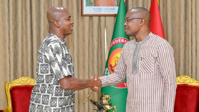 Le Premier ministre, Rimtalba Jean Emmanuel Ouédraogo, a reçu en audience, en début de matinée de ce lundi 14 avril 2025, l’ambassadeur pour le sport, l’ancien capitaine des Étalons, Charles Kaboré. Un seul point a meublé les échanges entre les deux personnalités : la promotion du sport pour en faire un levier de développement du Burkina Faso.