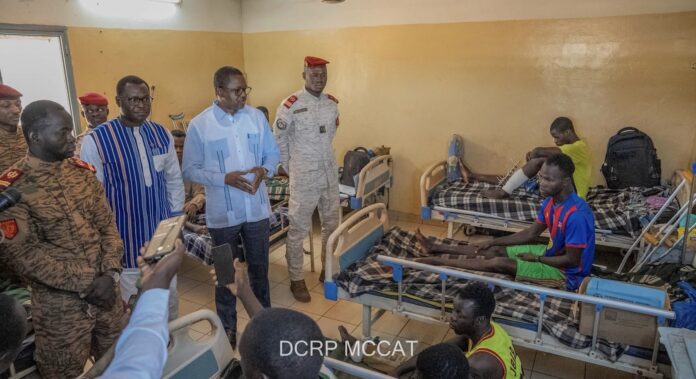 Une délégation gouvernementale conduite par les ministres en charge des Affaires Étrangères (SEM Jean Marie Karamoko Traoré) et de la Communication (Pingdwendé Gilbert Ouédraogo) était ce samedi 27 décembre 2025 au Centre médical militaire de Ouahigouya, précisément au camp Zondoma du 2ème Régiment d’infanterie commando, pour apporter un soutien moral aux blessés en opérations.