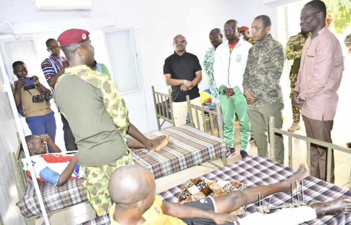 A l’infirmerie militaire de Gaoua, l’équipe gouvernementale a encouragé et exprimé son souhait de prompt rétablissement aux blessés de guerre. Elle a aussi salué le courage et le sacrifice de ses braves combattants qui ont défendu le Burkina Faso.