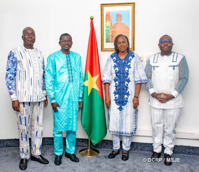 Le Ministre des Sports, de la Jeunesse et de l’Emploi, Madame Annick PIKBOUGOUM, a reçu en audience, ce lundi 26 janvier 2026, son homologue de l’Enseignement Secondaire, de la Formation Professionnelle et Technique, Monsieur Moumouni ZOUNGRANA, à l’occasion d’une visite de courtoisie.