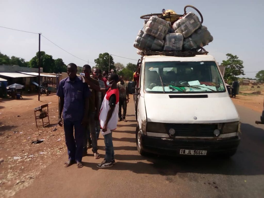 A l’image de KAMBIRE, Aicha Mimi YE est passager d’un car de transport de la compagnie staff et se rend à Banfora. Elle nous relate son constat durant son trajet de Bobo- Banfora : « le premier constat que j’ai fais est qu’il y a moins de passagers dans le car que les autres jours et nous ne sommes pas assis côte a côte. Le contrôle de température est effectif depuis Bobo et ici à Bounouna. Notre chauffeur a pris des passagers en route mais ce n’est pas comme avant ».