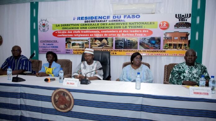 (Ouagadougou, 23 novembre 2024). La Direction générale des Archives nationales a organisé, le vendredi 22 novembre, sa 12e conférence publique sous le thème : « Le rôle des chefs traditionnels, coutumiers et des leaders des confessions religieuses en temps de crise au Burkina Faso ».