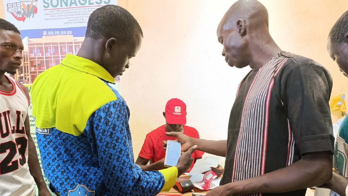 Sourire aux lèvres, elle se dirige vers l’équipe des opérateurs de téléphonie mobile installée sur place pour percevoir son paiement. C’est là l’une des grandes innovations de cette initiative : les producteurs sont payés immédiatement après la vente.